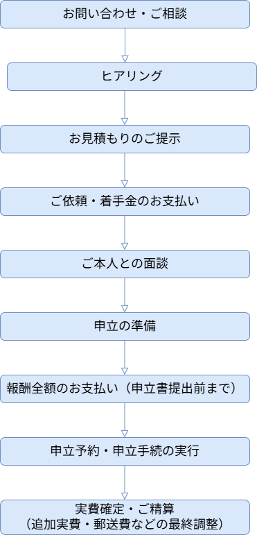 ※ 実費については概算でお預かりし、手続完了後に過不足をご精算します。