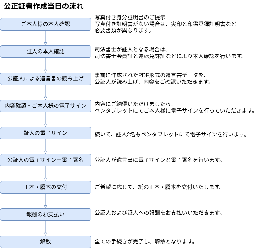 作成当日は、ご本人・公証人・証人が立ち会います。