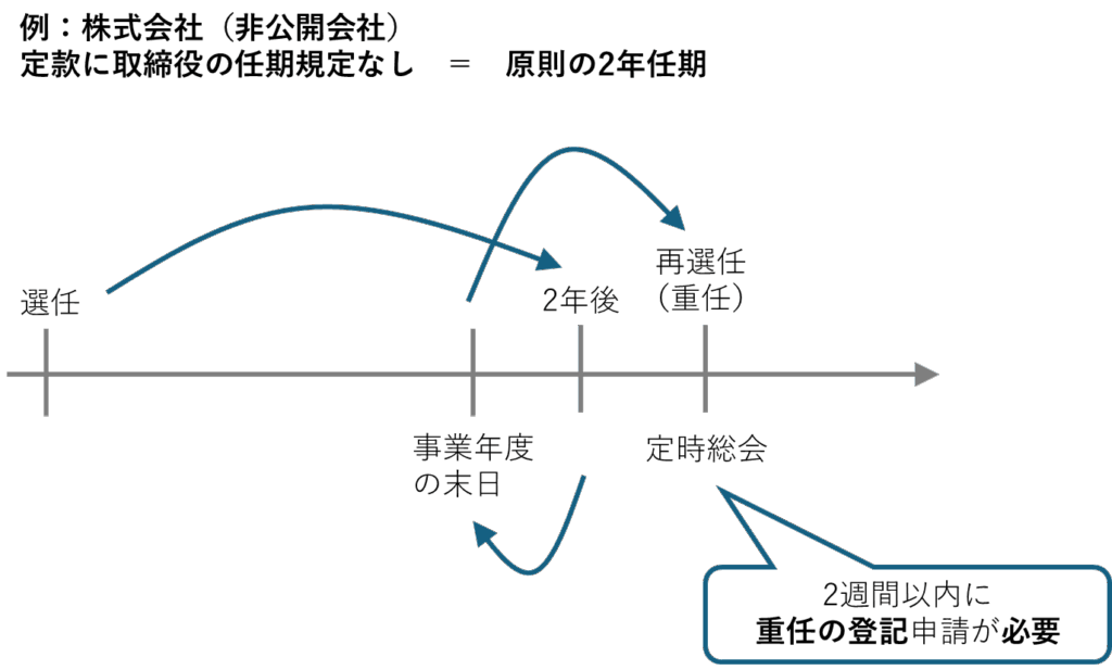 | 株式会社 (非公開会社) | 取締役 | 2年 | 最長10年 |